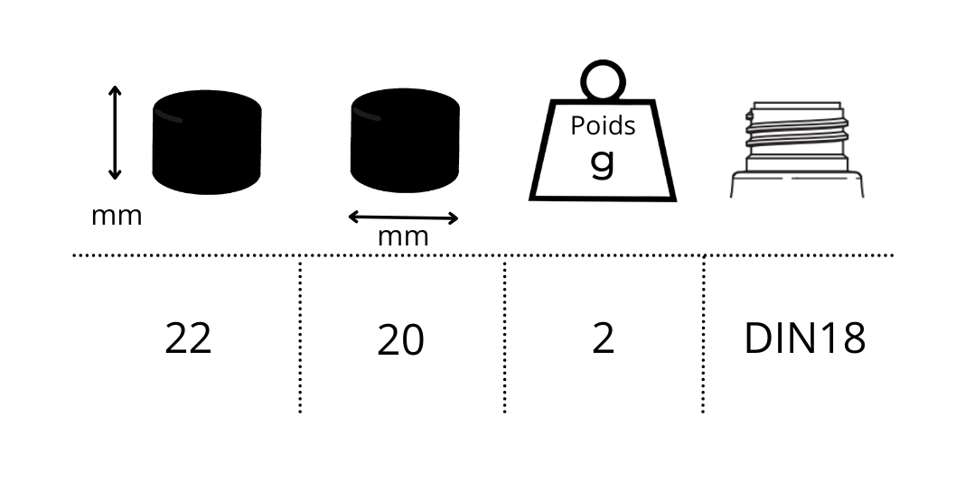 La capsule blanche en DIN18 ne possède pas de joint à l'intérieur, mais des lèvres internes qui permettent l'étanchéité du contenant. L'avantage de ce système est la restriction de la probabilité qu'il y ai une réaction chimique avec le produit à l'intérieur.
