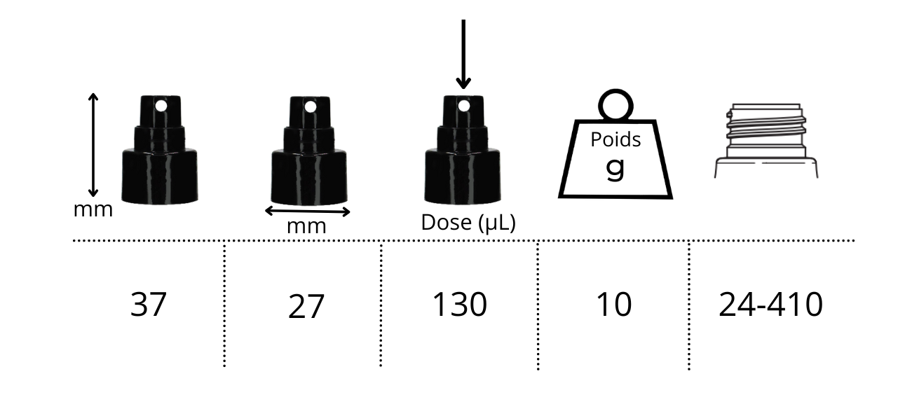 Ici, Dose130 signifie que la pompe expulse 130μL ou 0,130ml de produit en une seule pression complète.