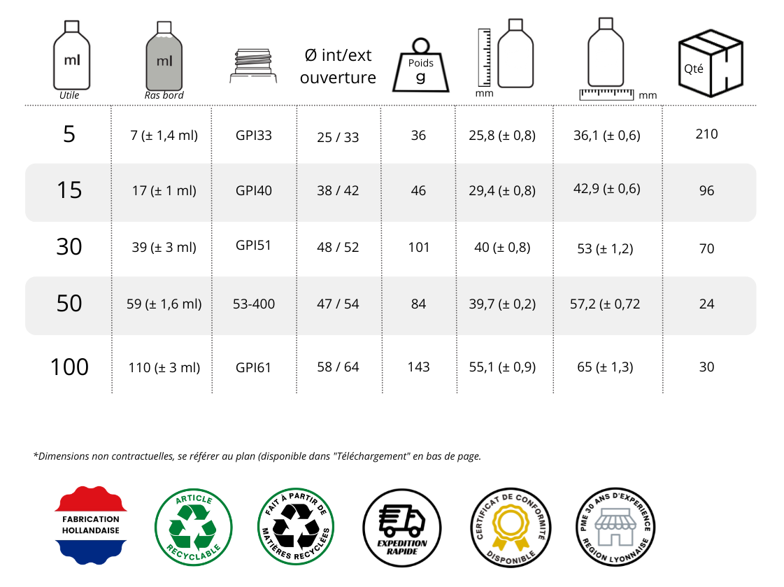 Pour aller plus loin sur l'aspect écologique, nous proposons pour chaque contenance un couvercle PCR (fabriqué à partir d'emballages plastiques recyclés) de couleur blanc ou noir.